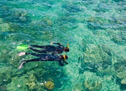 • Snorkeling in calm, shallow waters with full equipment provided