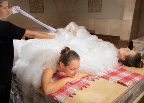 • Foam Massage with Aromatic Soap: Indulge in a gentle foam massage using aromatic soap and bubbles to revitalize and cleanse your skin.